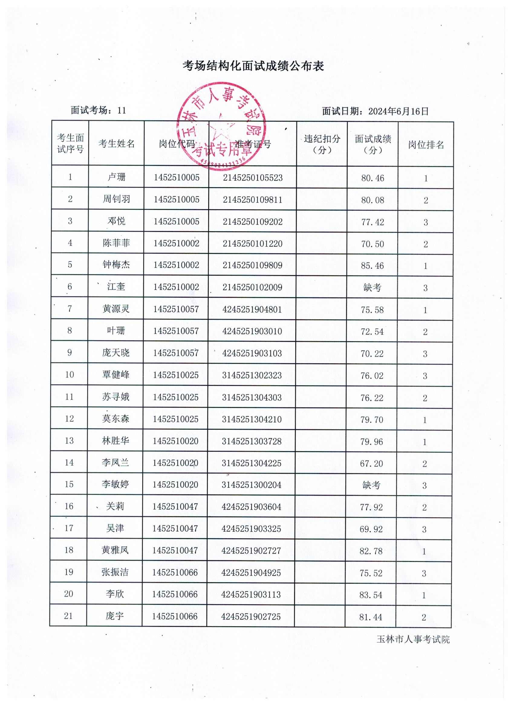 原文標題:2024年玉林市直(含玉州區(qū)、福綿區(qū)、玉東新區(qū))事業(yè)單位公開招聘人員面試成績公布(6月16日)