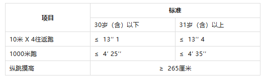 報(bào)考人員須參加全部三項(xiàng)體能測評(píng)。參加者凡有其中一項(xiàng)不達(dá)標(biāo)或放棄,視為體能測評(píng)不合格。體能測評(píng)合格,方可進(jìn)入下一環(huán)節(jié)。