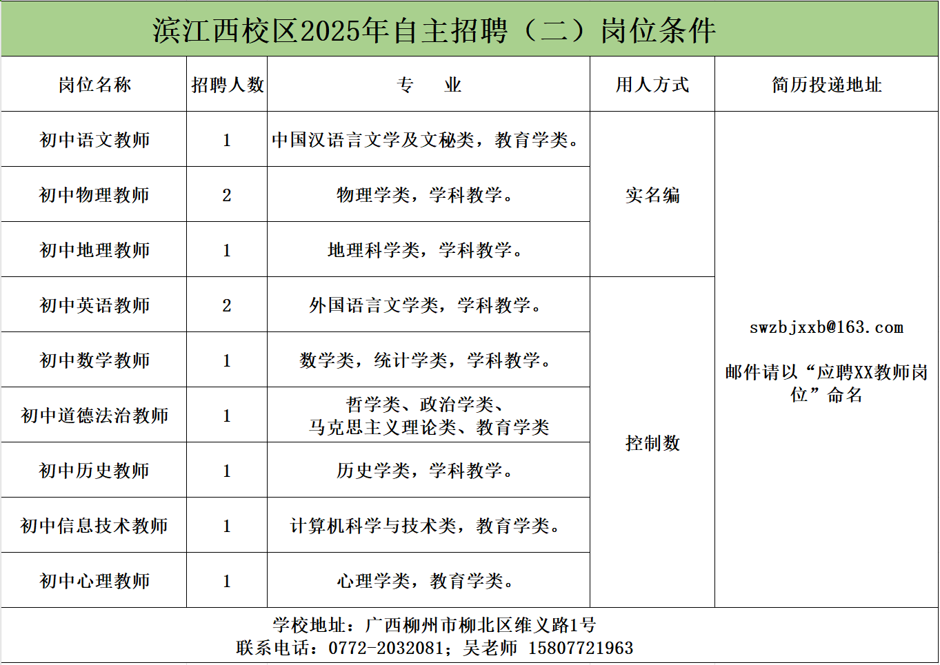柳州市第十五中學(xué)教師招聘