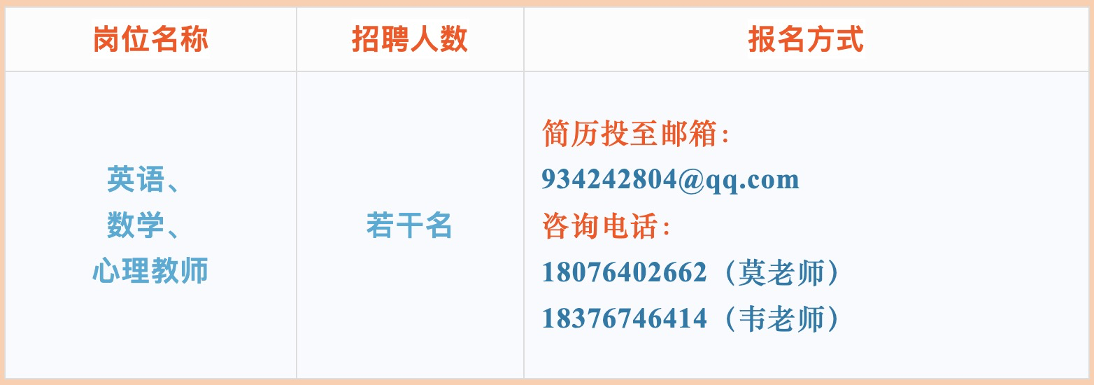 根據(jù)2025年春季學(xué)期我校教育教學(xué)需要,現(xiàn)向社會公開招聘編外教師。我校擬招若干名名初中英語、數(shù)學(xué)、心理頂崗教師。工資待遇按江南區(qū)政府事業(yè)單位臨時聘用人員工資標(biāo)準(zhǔn):無職稱3100元/月,初級職稱3200元/月,中級職稱3500元/月,高級職稱3700元/月,其他班主任津貼(5元/生·月)、年度績效(1000-1200元/年)和參與學(xué)校管理工作量發(fā)放(有五險一金)。學(xué)校提供免費住宿。