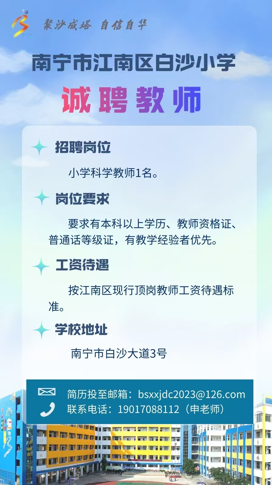 2025年南寧市江南區(qū)白沙小學(xué)誠聘教師1人