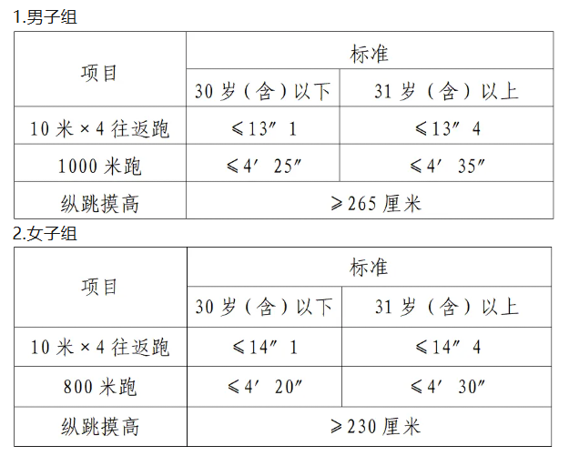 參加體能測(cè)評(píng)人員為筆試考試成績(jī)合格的考生。體能測(cè)評(píng)的標(biāo)準(zhǔn):參照《關(guān)于印發(fā)公安機(jī)關(guān)錄用人民警察體能測(cè)評(píng)項(xiàng)目和標(biāo)準(zhǔn)(暫行)的通知》(人社部發(fā)〔2011〕48號(hào))的標(biāo)準(zhǔn)。