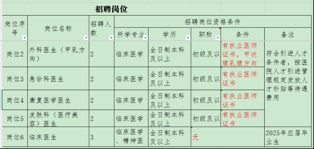 根據(jù)醫(yī)院業(yè)務(wù)發(fā)展需求,現(xiàn)向社會公開招聘以下崗位人員,具體招聘事宜如下: