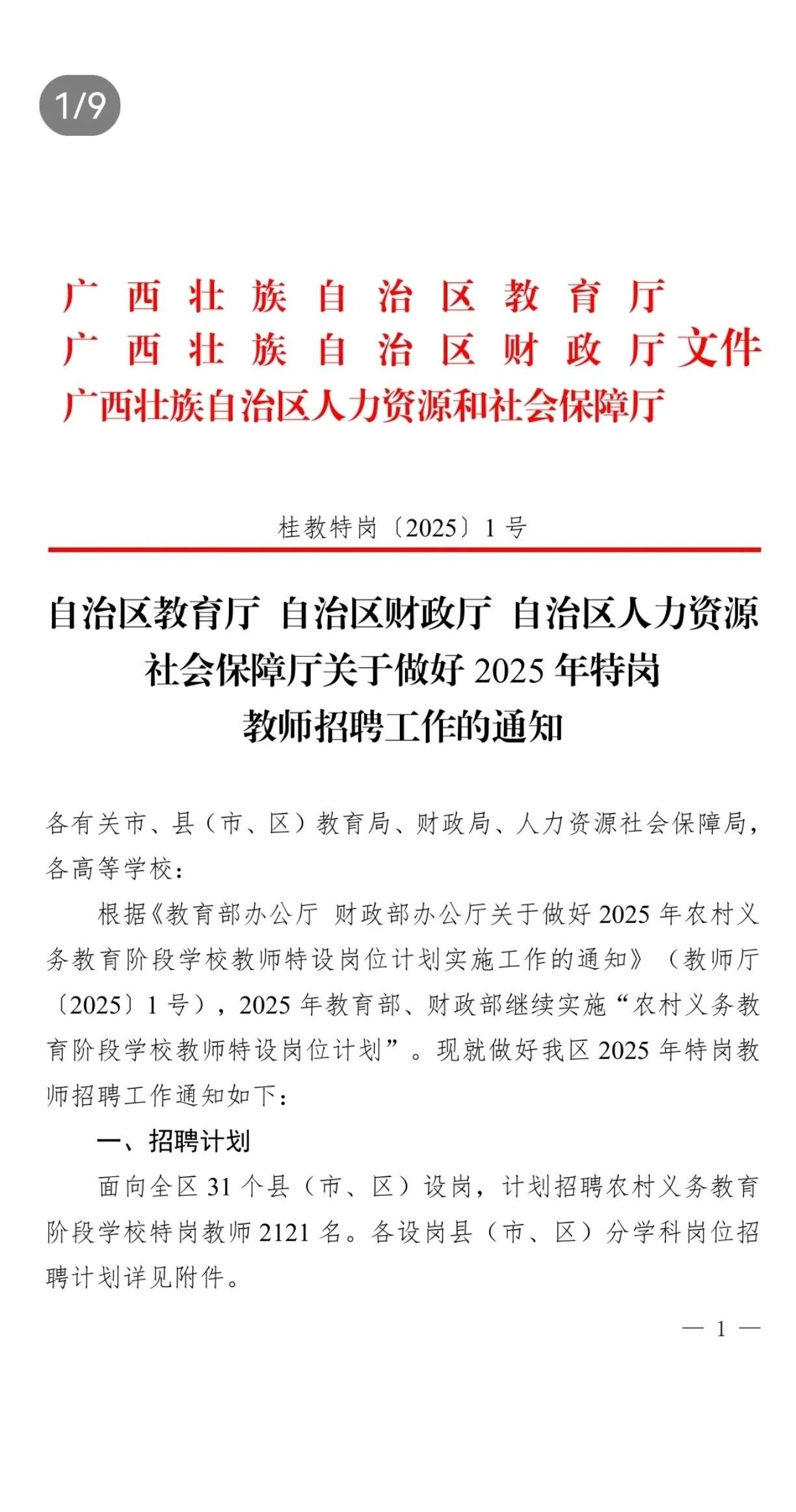 廣西2025年特崗教師招聘2121人!各地市崗位表已出!