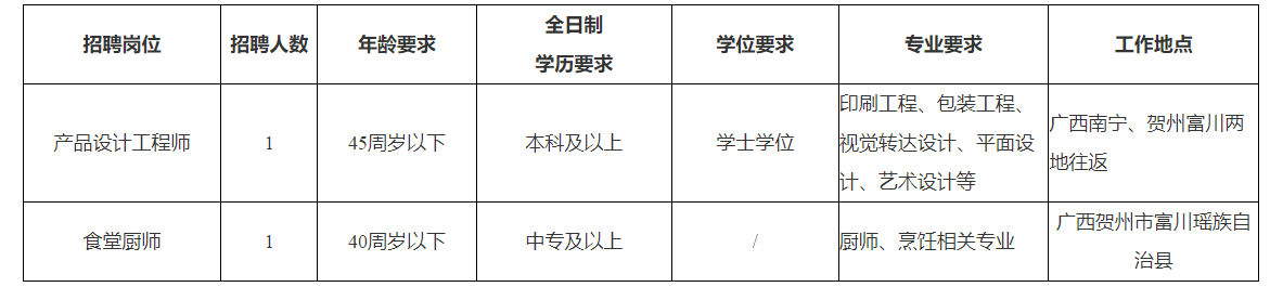 本次公開(kāi)招聘2人,需求崗位、人數(shù)、學(xué)歷專(zhuān)業(yè)要求等資格條件,工作內(nèi)容、職位要求詳見(jiàn)附件《廣西真龍彩印包裝有限公司2025年第一批次人才招聘需求表》
