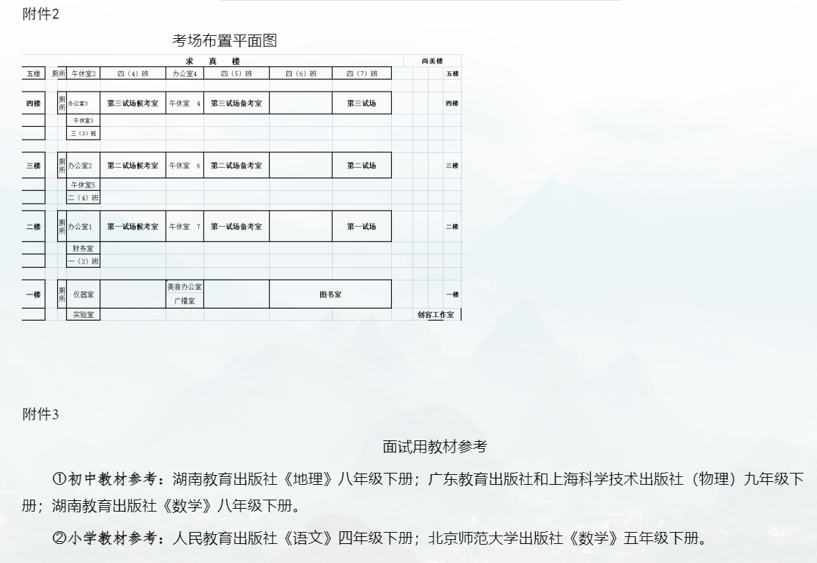 (二)面試內(nèi)容:面試主要是通過試講考察考生的專業(yè)素質(zhì)和教育教學(xué)綜合素質(zhì),包括:對教材的分析和把握程度、專業(yè)知識能力、教學(xué)設(shè)計、教學(xué)方法、教師素養(yǎng)等。試講教材為我縣相應(yīng)崗位學(xué)校用書,詳見面試用教材參考(附件3)。