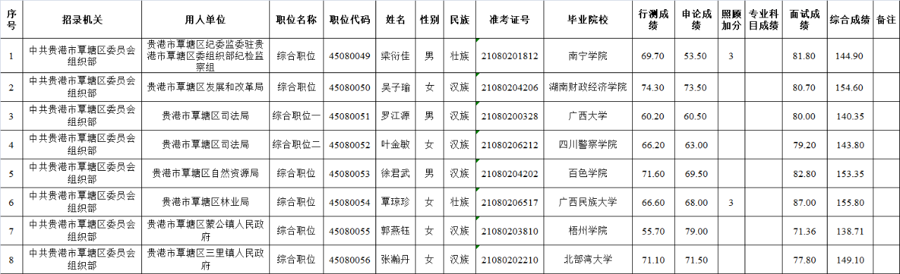 | 6.6 | 貴港市港北區(qū)2025年度考試錄用公務員擬錄用人員名單(一) |