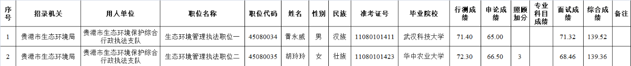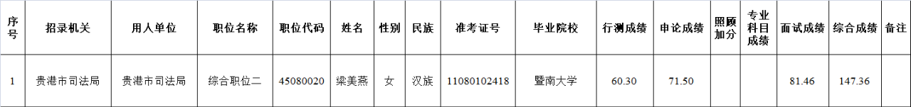 | 6.6 | 貴港市司法局2025年度考試錄用公務員擬錄用人員名單 |