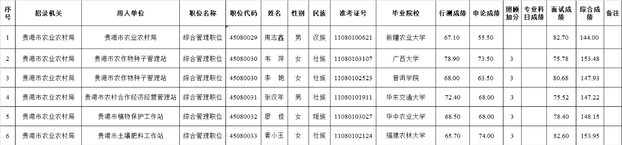 | 6.6 | 貴港市人力資源和社會保障局2025年度考試錄用公務員擬錄用人員名單 |