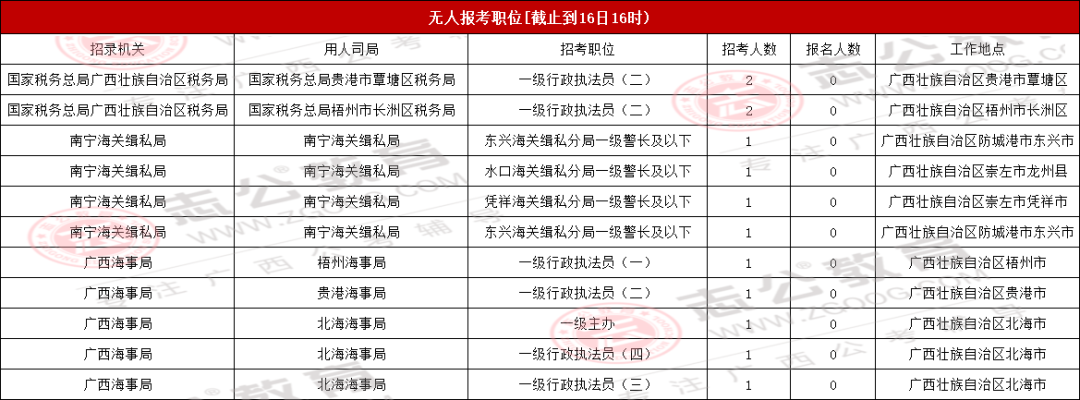 考生們注意!截至10月16日16時(shí),2026國(guó)考(廣西)地區(qū)還有71個(gè)無(wú)人報(bào)考,占全部748個(gè)職位的9.49%。想避開激烈競(jìng)爭(zhēng)的話,不妨結(jié)合自己的條件,多看看這些冷門崗位~