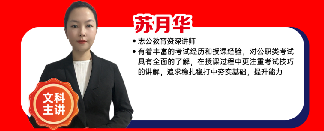 ?有著豐富的考試經(jīng)歷和授課經(jīng)驗(yàn),對(duì)公職類考試具有全面的了解,在授課過(guò)程中更注重考試技巧的講解,追求穩(wěn)扎穩(wěn)打中夯實(shí)基礎(chǔ),提升能力。
